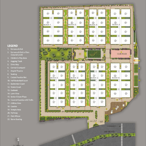 The project is spread over in an area of 4.75 acres, consists of 8 blocks, each block with ground plus 5 floors. The community has 420 premium apartments (3BHK - 140 & 2BHK - 280) provided with world class amenities and recreational facilities. It also has a state of art landscaping throughout the community.